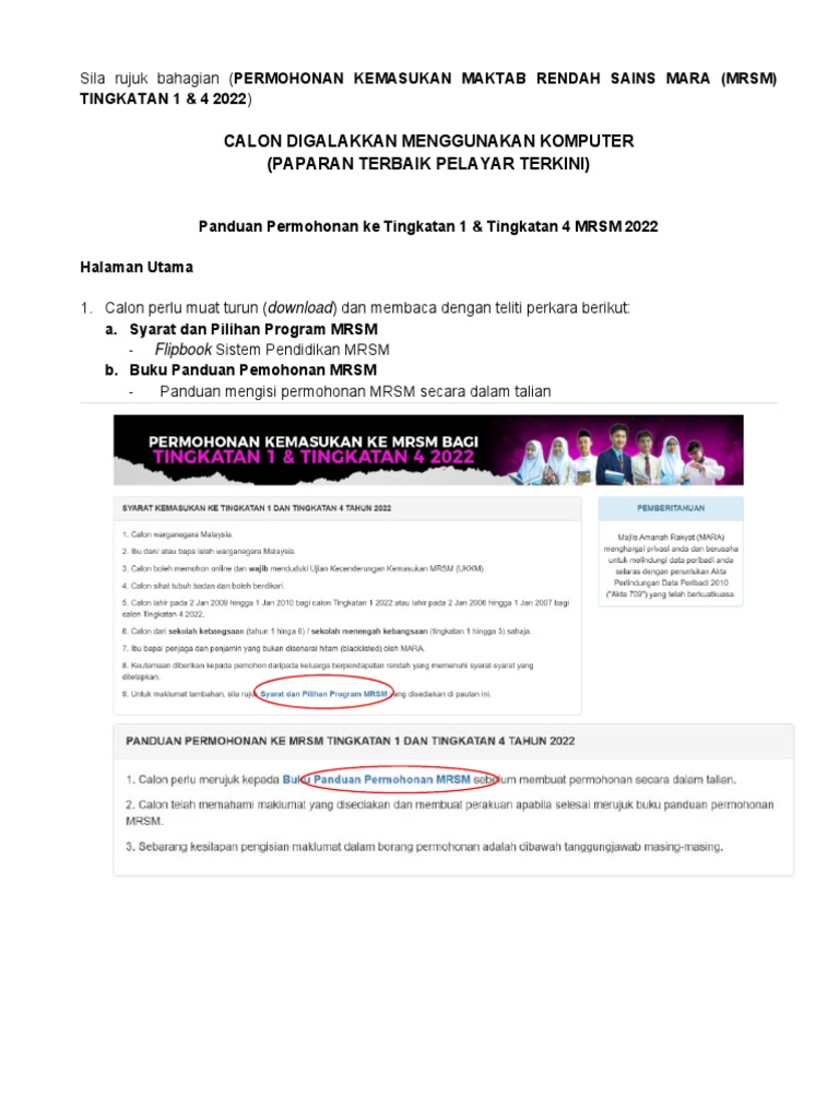 PANDUAN PERMOHONAN MRSM. Berikut adalah pautan kepada maklumat program serta panduan memohon ke MRSM Tingkatan 1 tahun 2021. B Cara Mengisi Borang Permohonan Online.